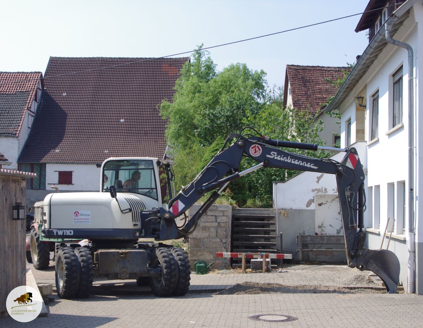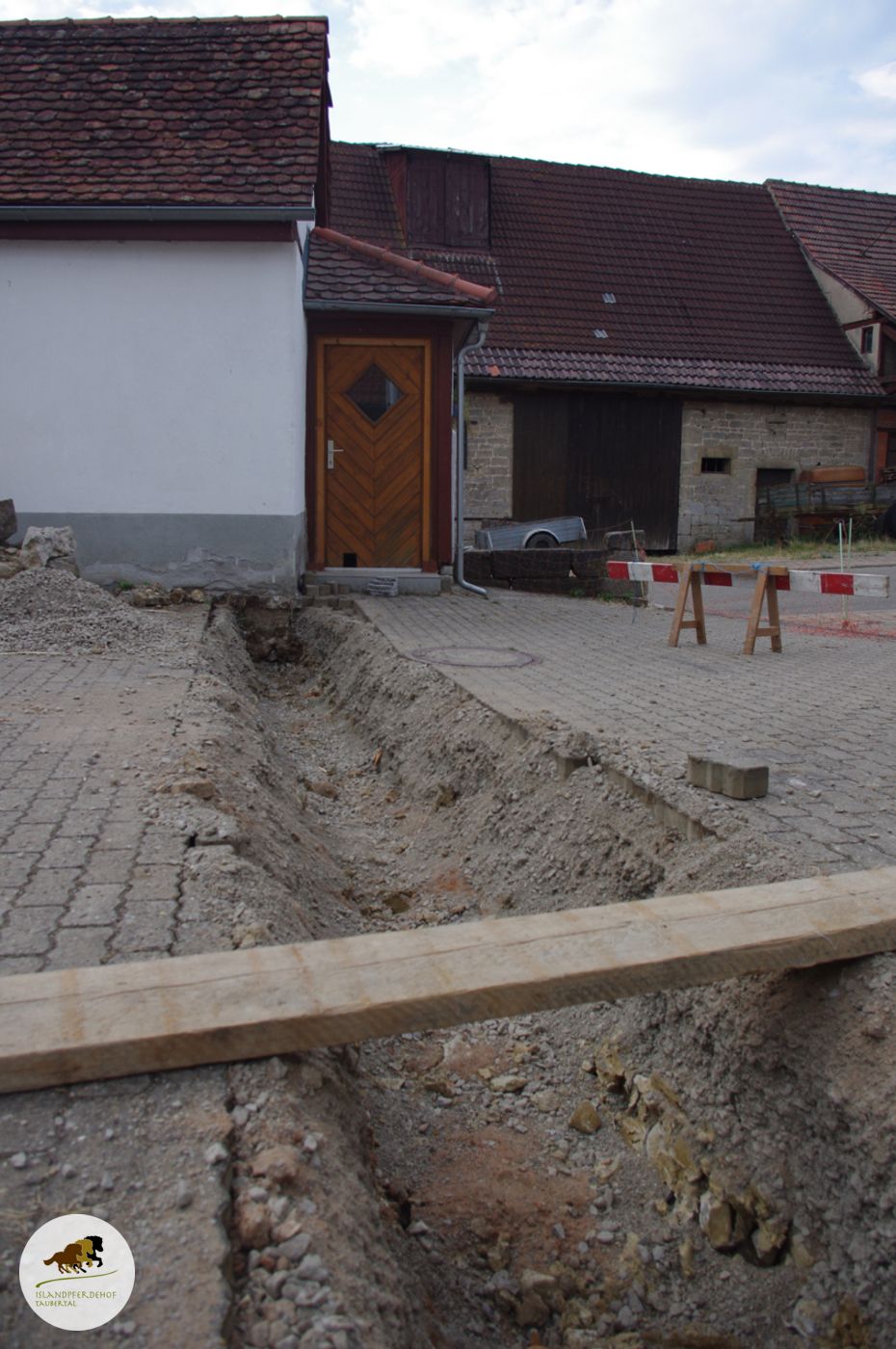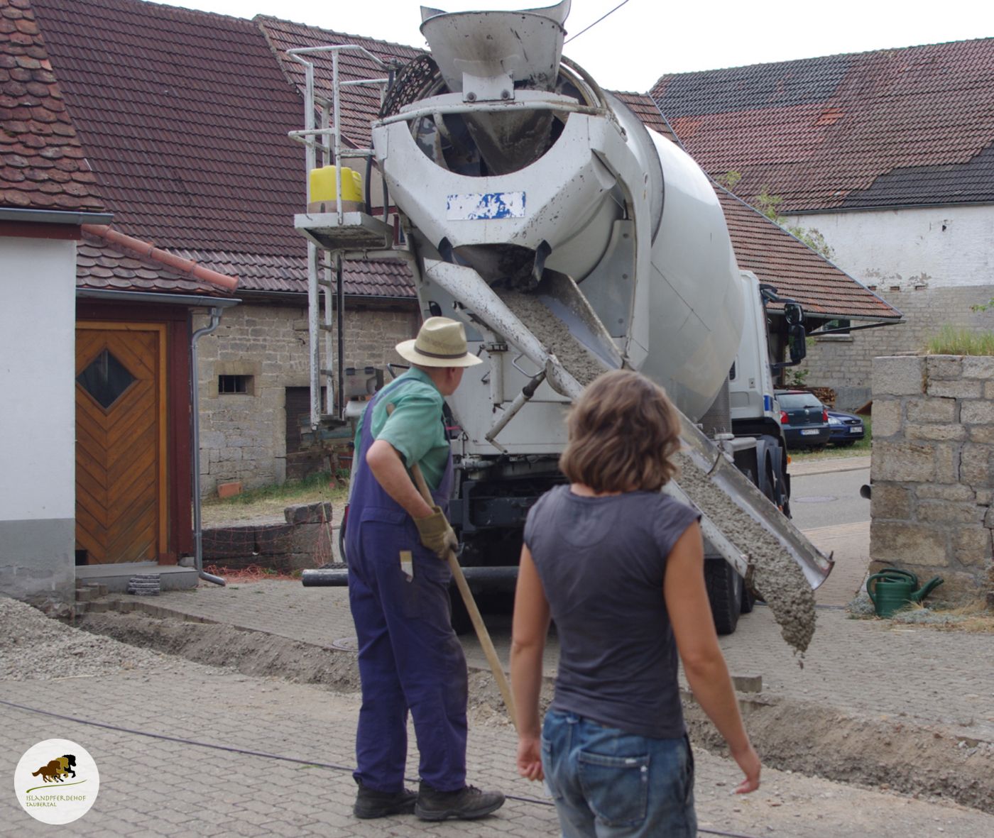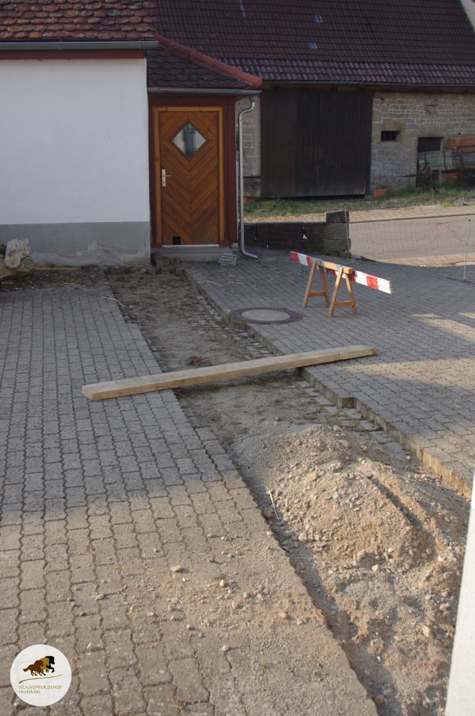 In dieser Woche hat sich unsere Hofeinfahrt in eine Baustelle verwandelt. Der provisorische Zaun dort wird jetzt durch ein ordentliches und hübsches Hoftor ersetzt.