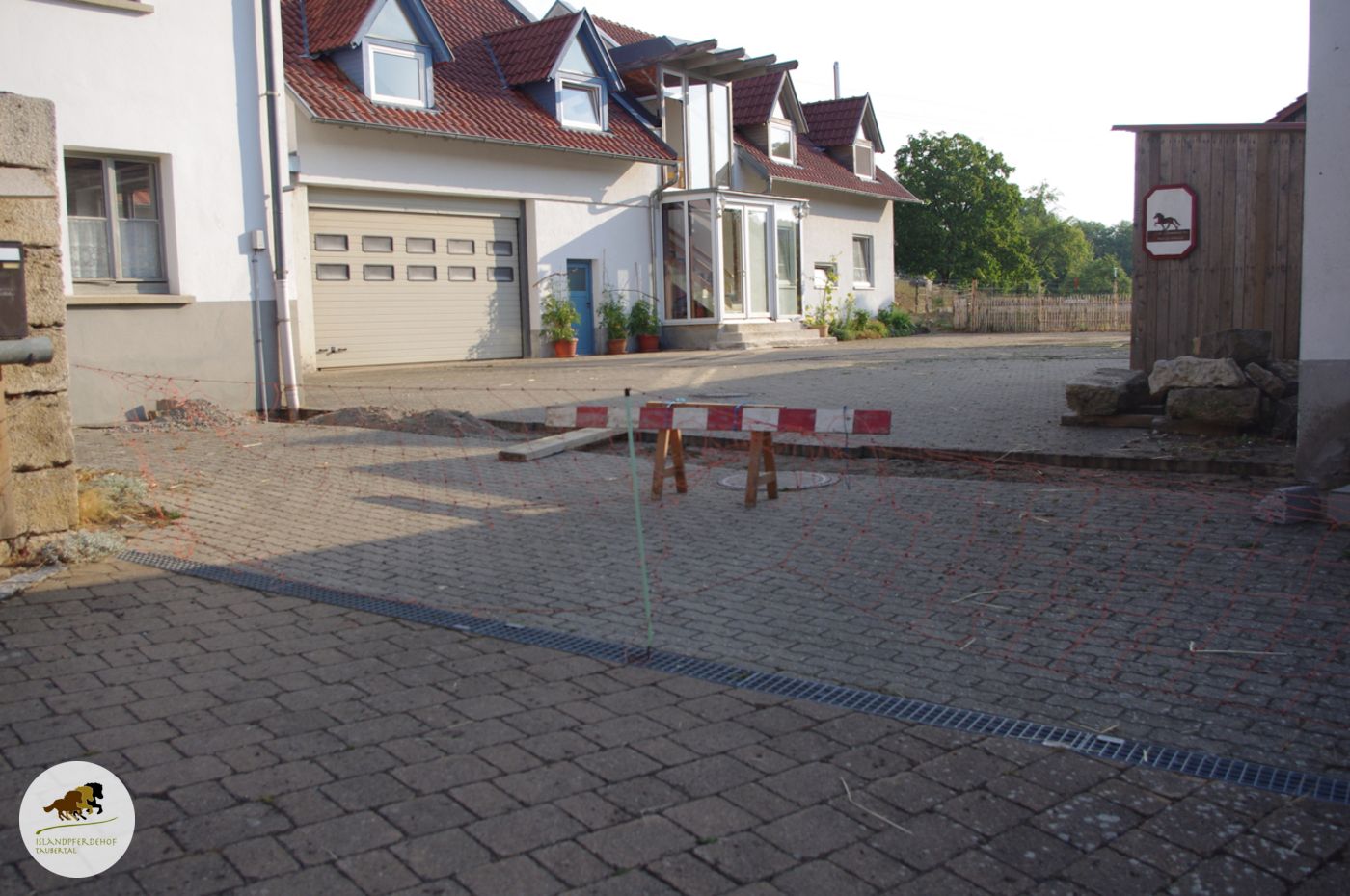 In dieser Woche hat sich unsere Hofeinfahrt in eine Baustelle verwandelt. Der provisorische Zaun dort wird jetzt durch ein ordentliches und hübsches Hoftor ersetzt.