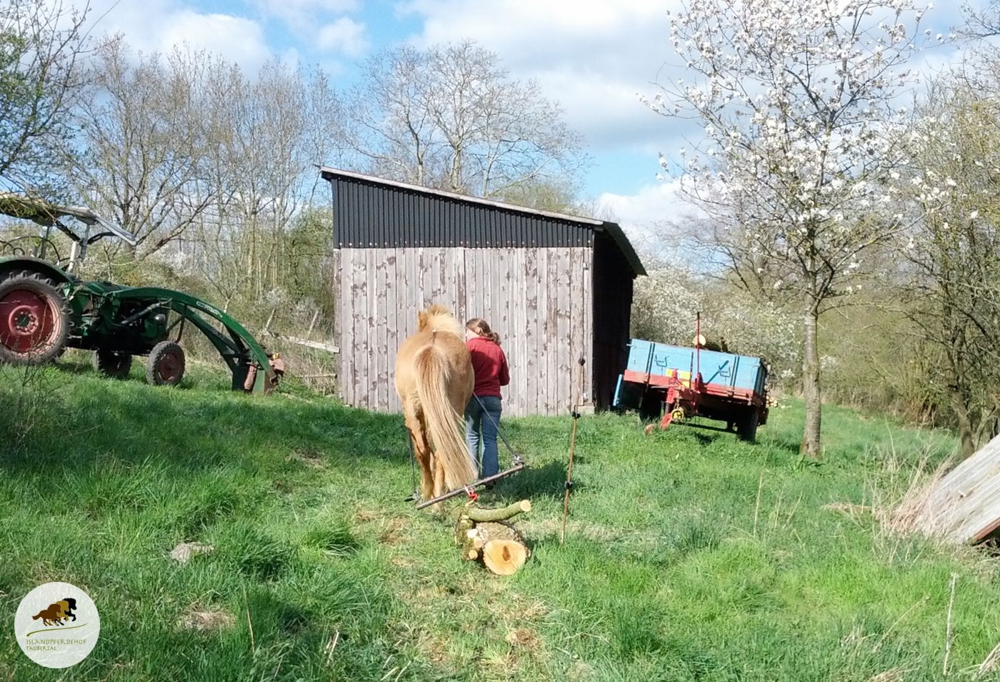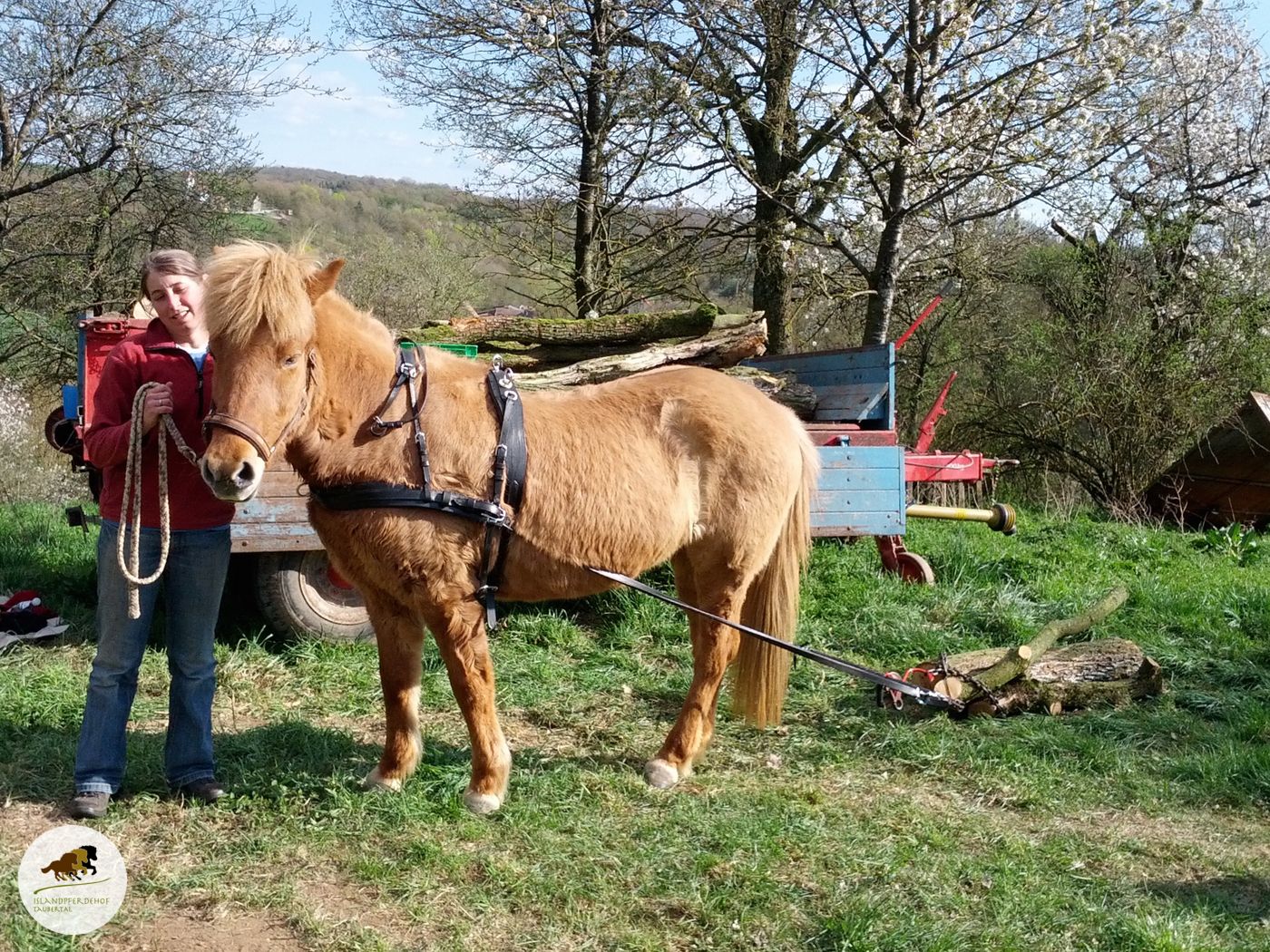 Also durfte unsere fleißige Islandstute Rosi ihren Arbeitseifer unter Beweis stellen. Sie hatte große Freude dabei, das Holz den Hang hinauf zu ziehen. Die nächste Holzernte-Saison kann also kommen - wir sind vorbereitet!