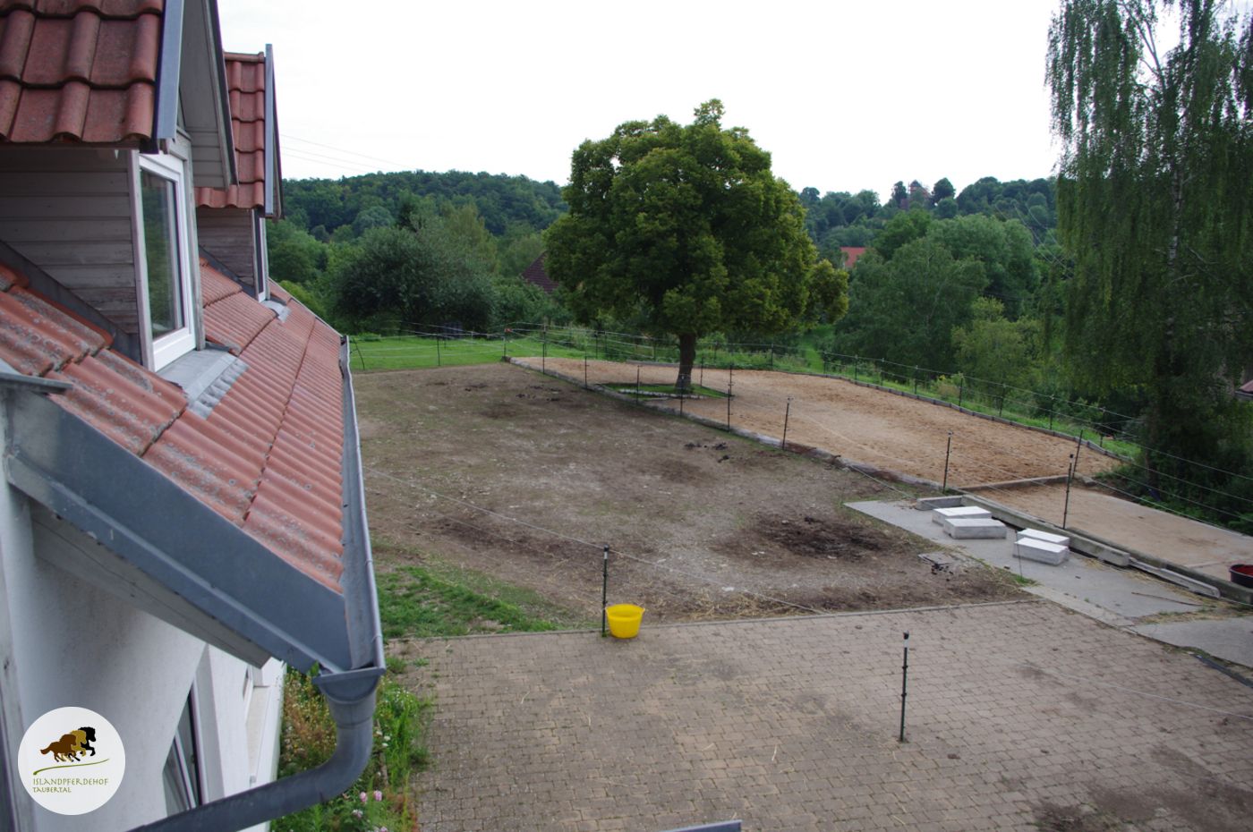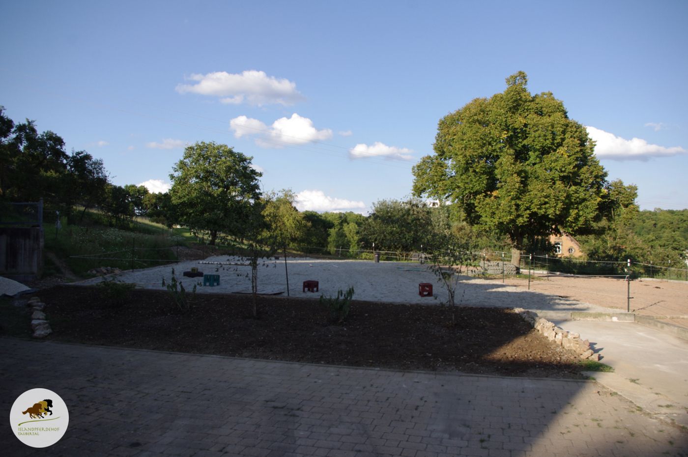Direkt neben dem Paddock ist unser praktischer Reitplatz entstanden. Zunächst war hier nur eine Wiese, die von den Ponys schon ziemlich zertrampelt war.