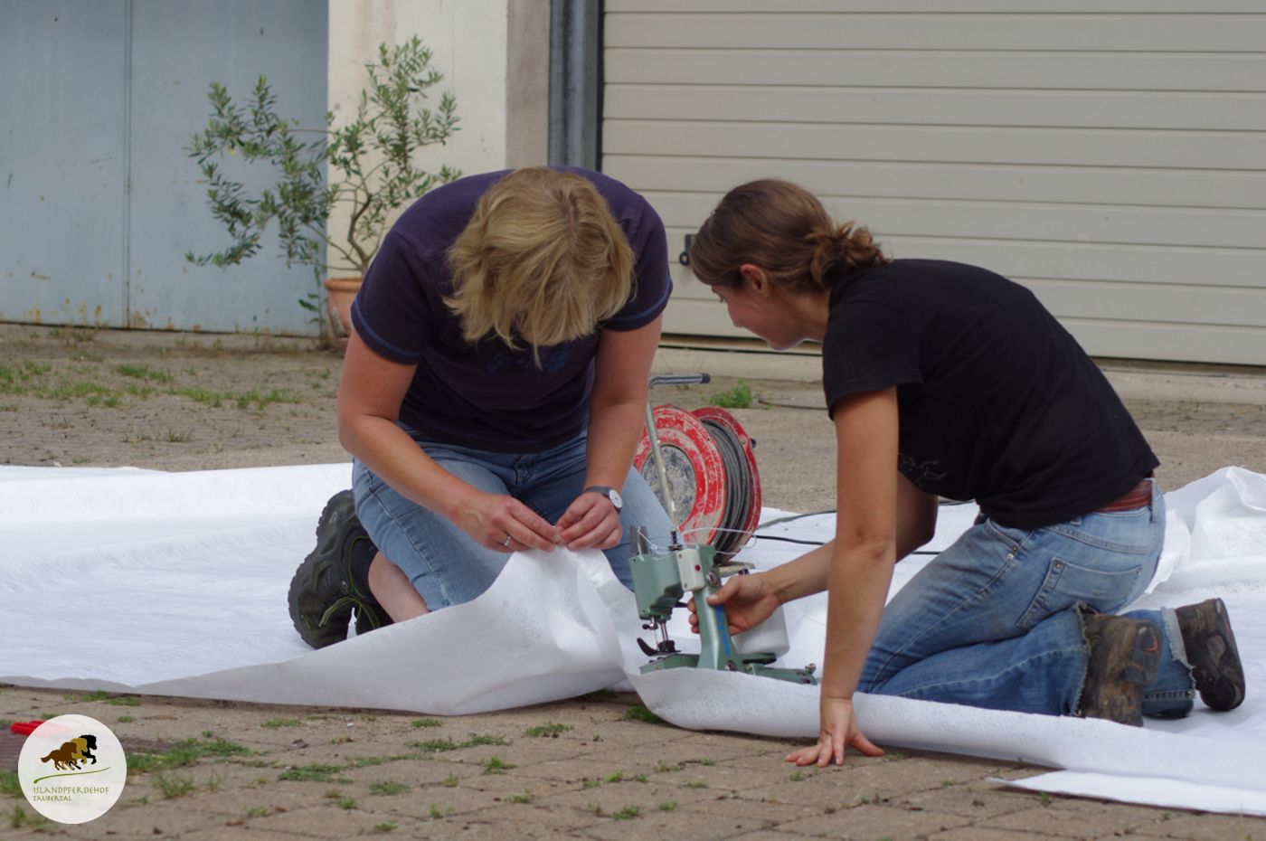 Im ersten Schritt wurde der Boden mit einem Bagger begradigt. Ein kleiner Teil eines existierenden Hangs musste dabei abgetragen werden, um ausreichend Fläche für den Reitplatz zu schaffen. Auf diese neu geschaffene Ebene wurde ein Vlies gelegt. Dadurch wird verhindert, dass die Pflanzen wieder ihren Weg nach oben finden. Außerdem ist auch gewährleistet, dass sich die Reitplatz-Materialien im Lauf der Zeit nicht immer weiter in den Boden arbeiten.